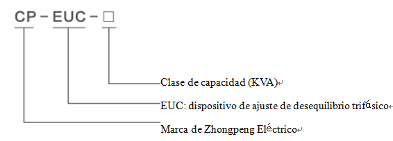 • Ejemplo: CP-EUC-60 significa el dispositivo de ajuste de desequilibrio trifásico de Zhongpeng Electric con una capacidad nominal de 60 kVA.